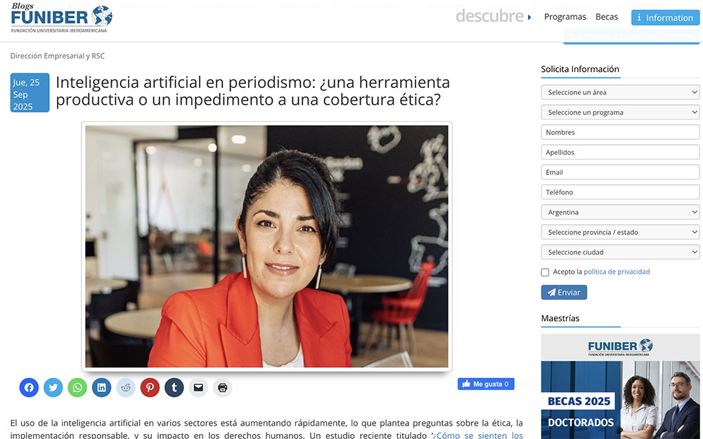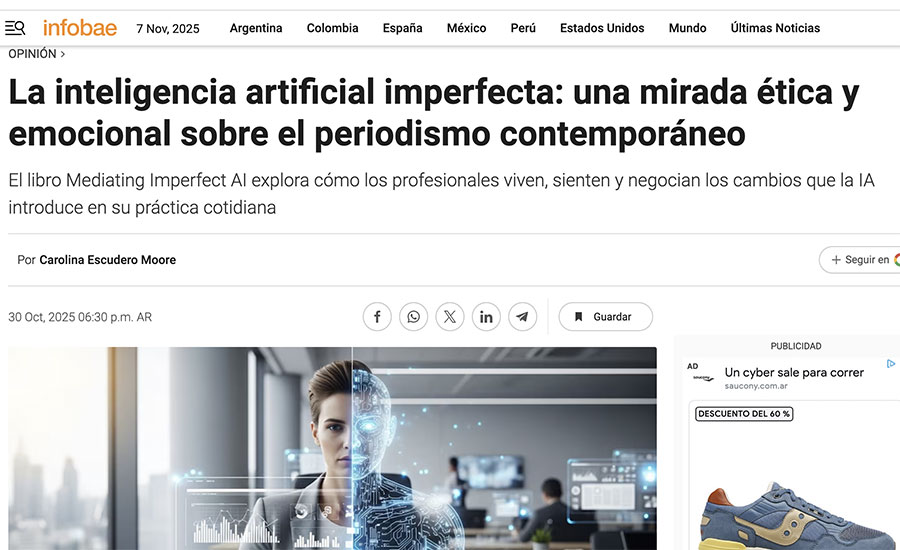 La periodista publica su nuevo libro Mediating Imperfect AI (Springer, 2025) en el que examina la relación entre la Inteligencia Artificial y el periodismo desde las emociones.