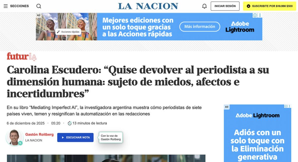En su libro “Mediating Imperfect AI”, la investigadora argentina muestra cómo periodistas de siete países viven, temen y resignifican la automatización en las redacciones
